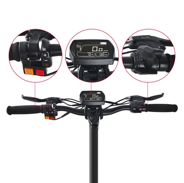 Display: zeigt Geschwindigkeit, Tages/Odometer, Ladeanzeige